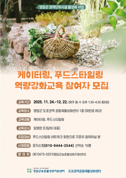 ■ 2024년 영암군 시군역량강화사업 <행복농촌 마을학교> 개강합니다! 오는 9월 10일(화) 16시부터 18시까지, 영암읍 ‘달마지복..